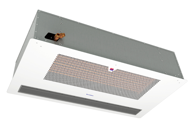 Встраиваемая потолочная воздушно-тепловая завеса для проёмов высотой до 4,5 метров. Тепловая завеса предназначена для скрытой установки за подвесным потолком. Сервис и обслуживаниеосуществляется через переднюю панель завесы.