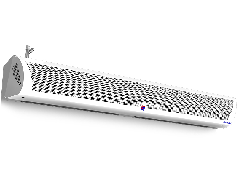 Тепловая завеса Комфорт для проемов высотой от 2 до 3,5 м. Переднее всасывание воздуха допускает установку завесы в ограниченном пространстве. По заказу панель - из нержавеющей стали.