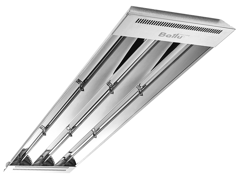 - Установка на потолке сохраняет свободу рабочей зоны и исключает возможность ожога;