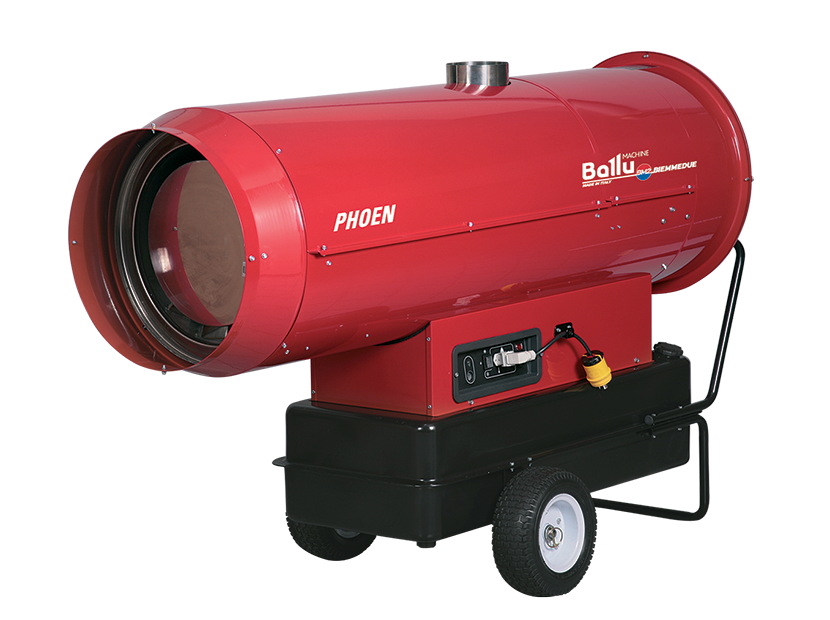 Нагреватели воздуха Ballu-Biemmedue серии Arcotherm PHOEN – оптимальное решение для автономного обогрева помещений с длительным нахождением людей и поддержанием заданной температуры в автоматическом режиме. Подаваемый мощным вентилятором воздух (5300 м³/час) обдувает теплообменник по всей его площади, нагревается и поступает в обогреваемое пространство. Отработанные газы из камеры сгорания выводятся через специально организованный дымоотвод.