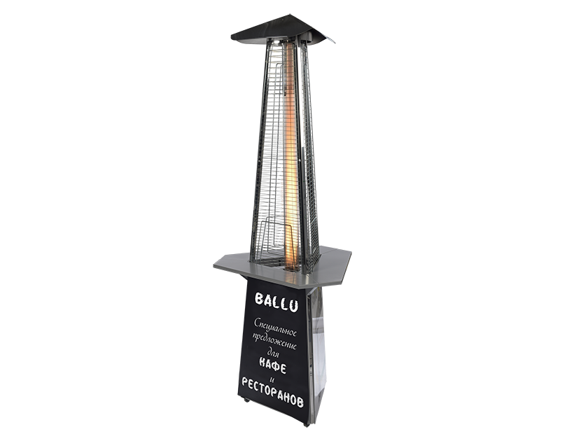 Столик разработан инженерами Ballu с учётом всех особенностей использования уличных обогревателей на летних верандах ресторанов и в уличных кафе.